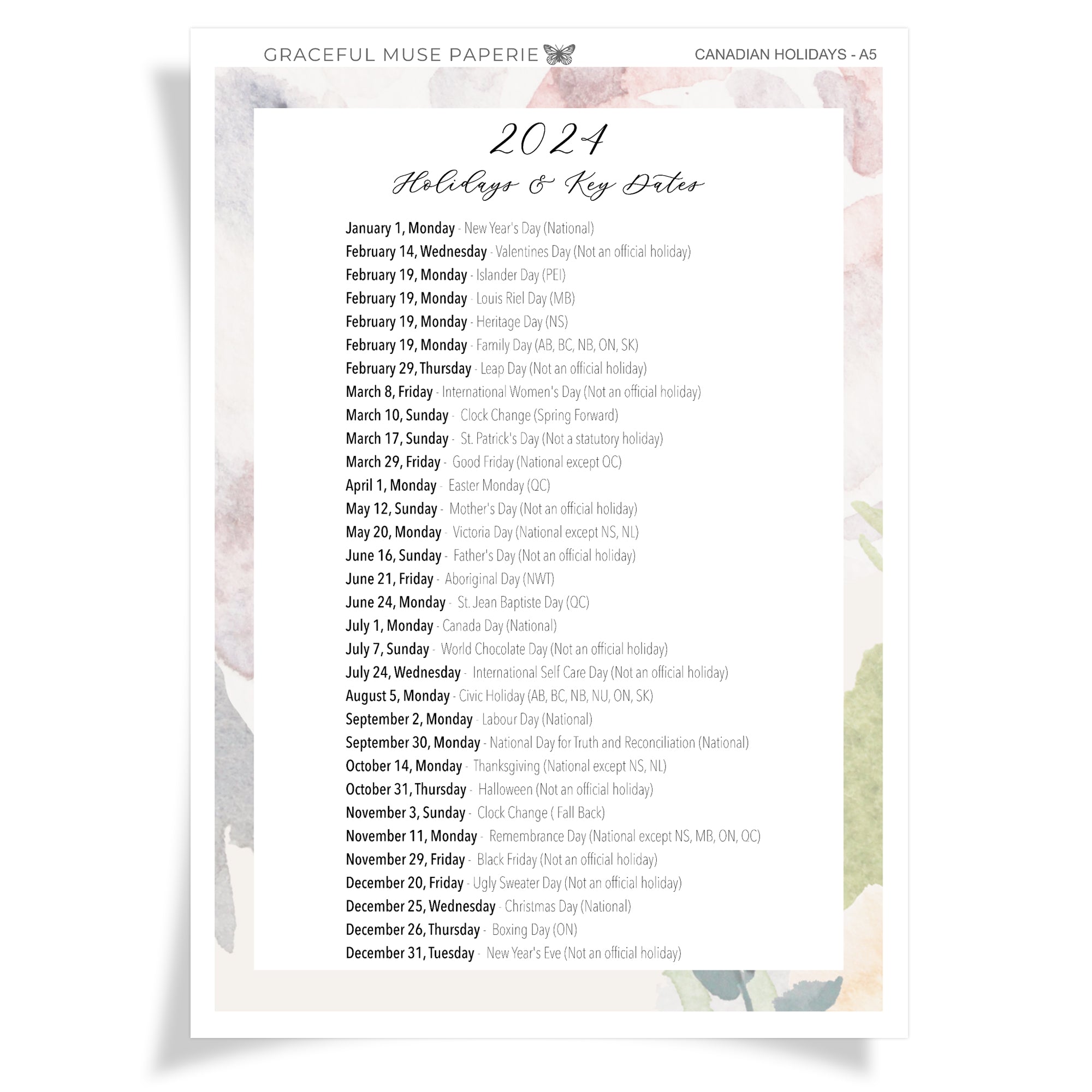 2024 Canadian Holidays Insert Sticker | Floral Burst